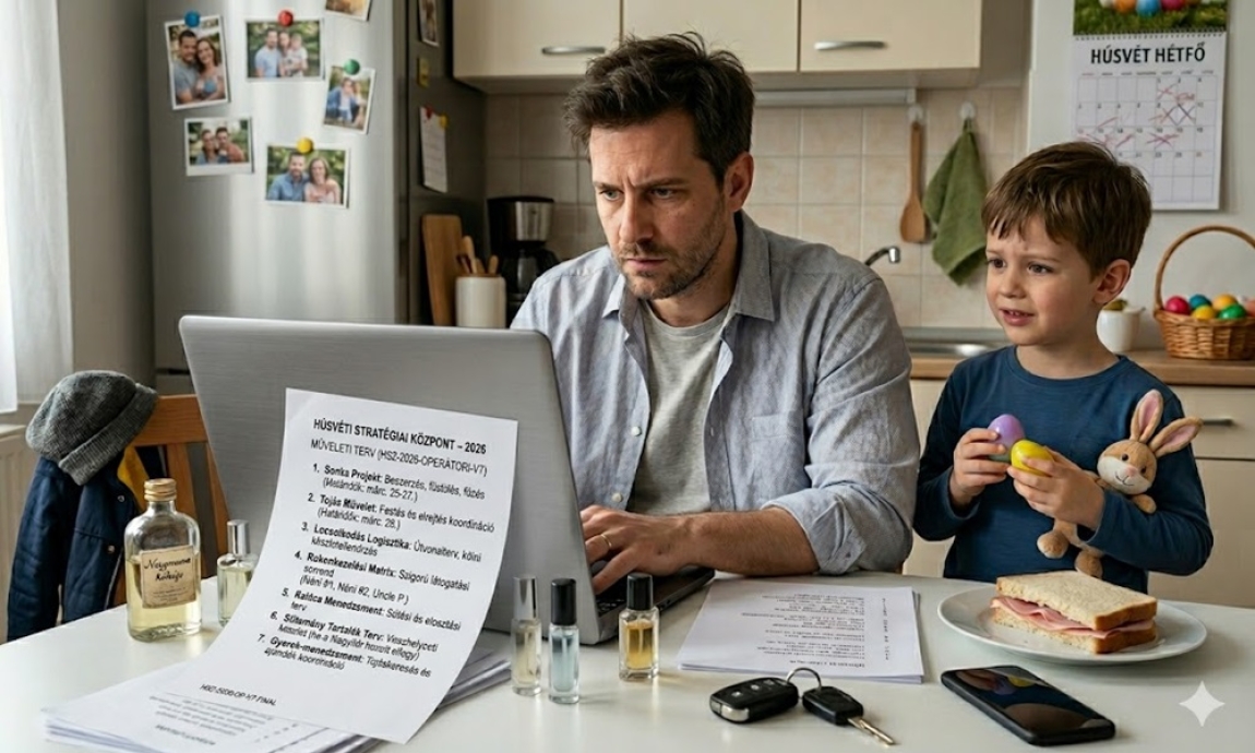 A locsolkodás akkor válik igazán fárasztóvá, amikor nem arról szól, hogy kivel lenne jó találkozni, hanem arról, hogy kit nem szabad kihagyni. Ilyenkor belép a családi matek. Ha ide mentünk, oda is kell. Ha tavaly voltunk, idén sem lehet nem menni. Ha az egyik ághoz átugrunk, a másikhoz is illene. És már kész is a húsvéti Excel-tábla, csak most sonkával és kölnivel. Sajátélményszerűen sok férfi ismeri azt az érzést, amikor húsvéthétfő dél körül már inkább csak sodródik egyik helyről a másikra, és hirtelen azon kapja magát, hogy a nap nem az ünnepről szól, hanem a diplomatikus jelenlétlogisztikáról. Ez az a pont, ahol a hagyományból könnyen kötelezettség lesz.